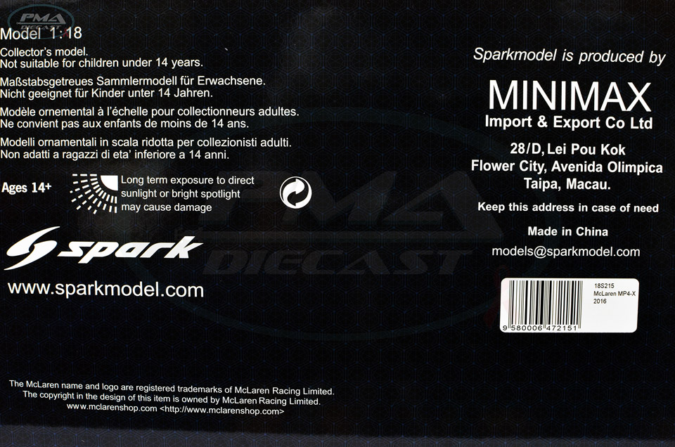 2015 MCLAREN MP4-X 1:18