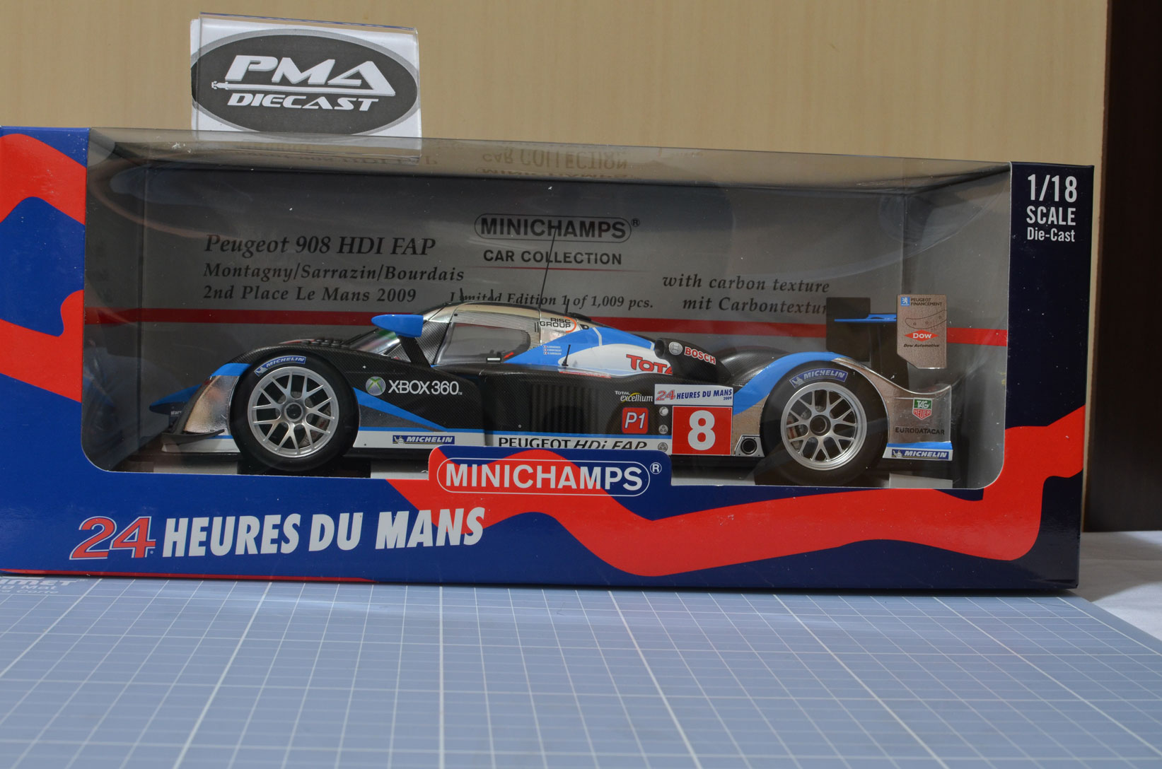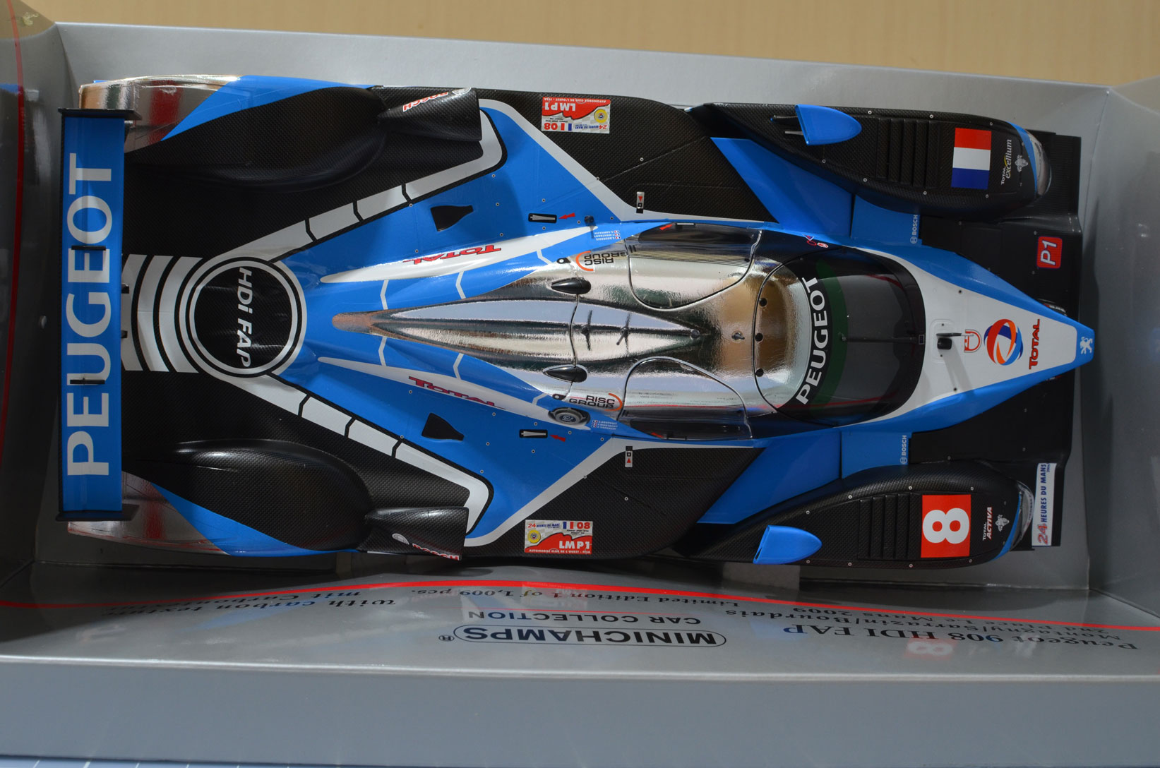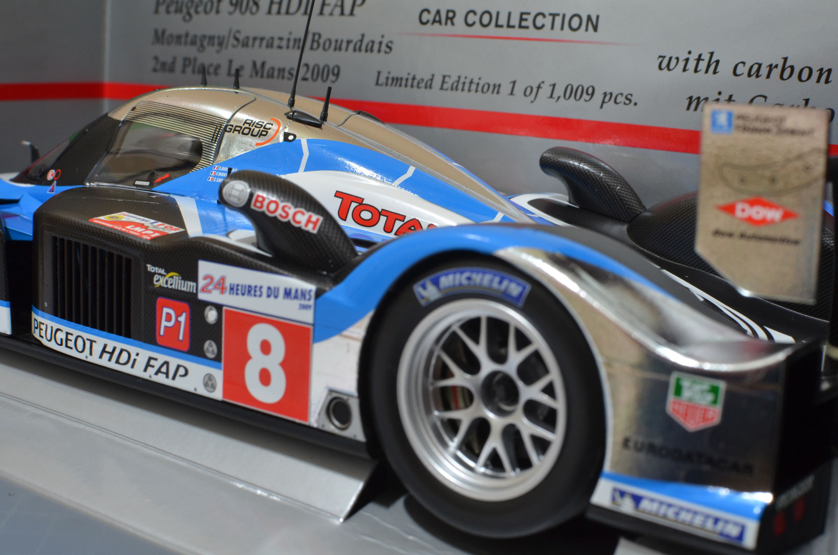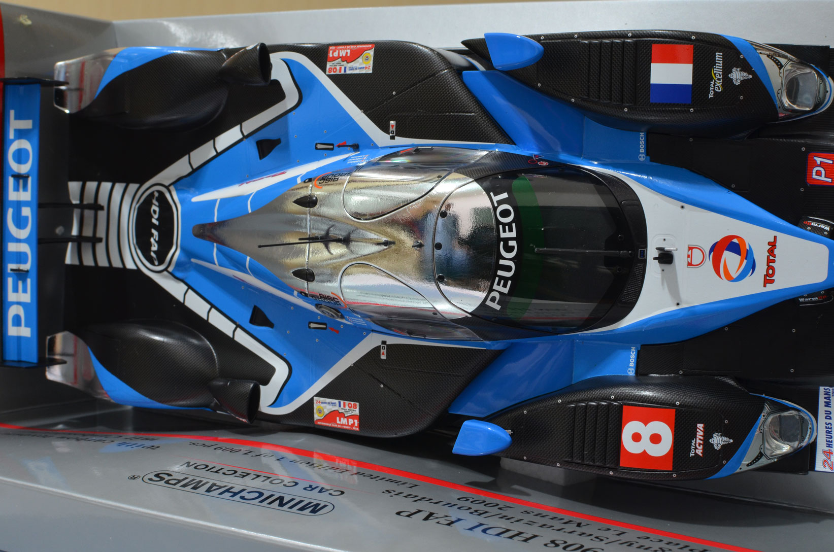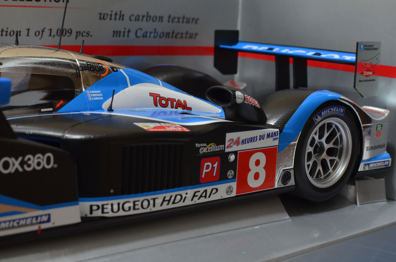 FRANCK MONTAGNY, SÉBASTIEN BOURDAIS, STÉPHANE SARRAZIN 2009 PEUGEOT SPORT TOTAL PEUGEOT 908 HDI FAP 1:18