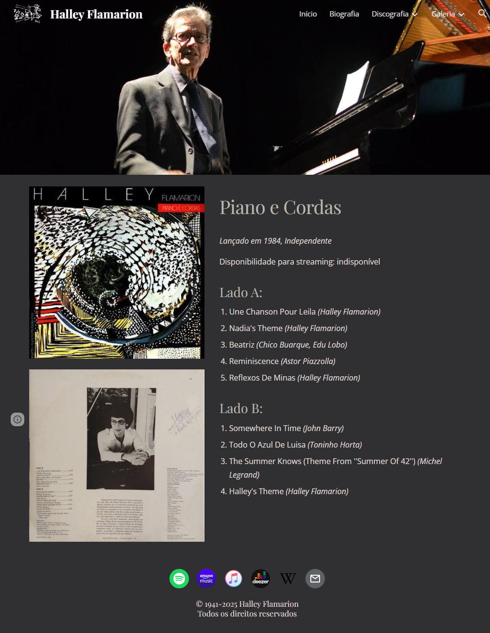 The Halley Flamarion official website is a long-term personal project built to preserve and share the artistic legacy of my father — a musician whose career spans seven decades of performances, recordings, and collaborations.